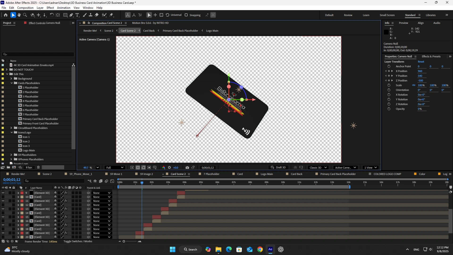 3D Digital Business Card, NFC card animation.