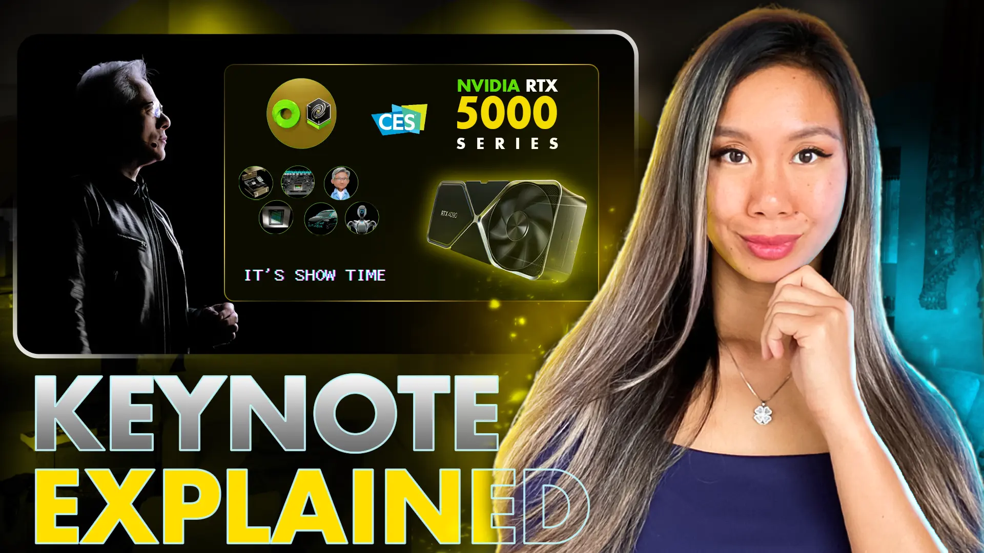 summarizing key highlights from CES 2025. The video focuses on emerging technologies such as AI, humanoid robots, machines, and