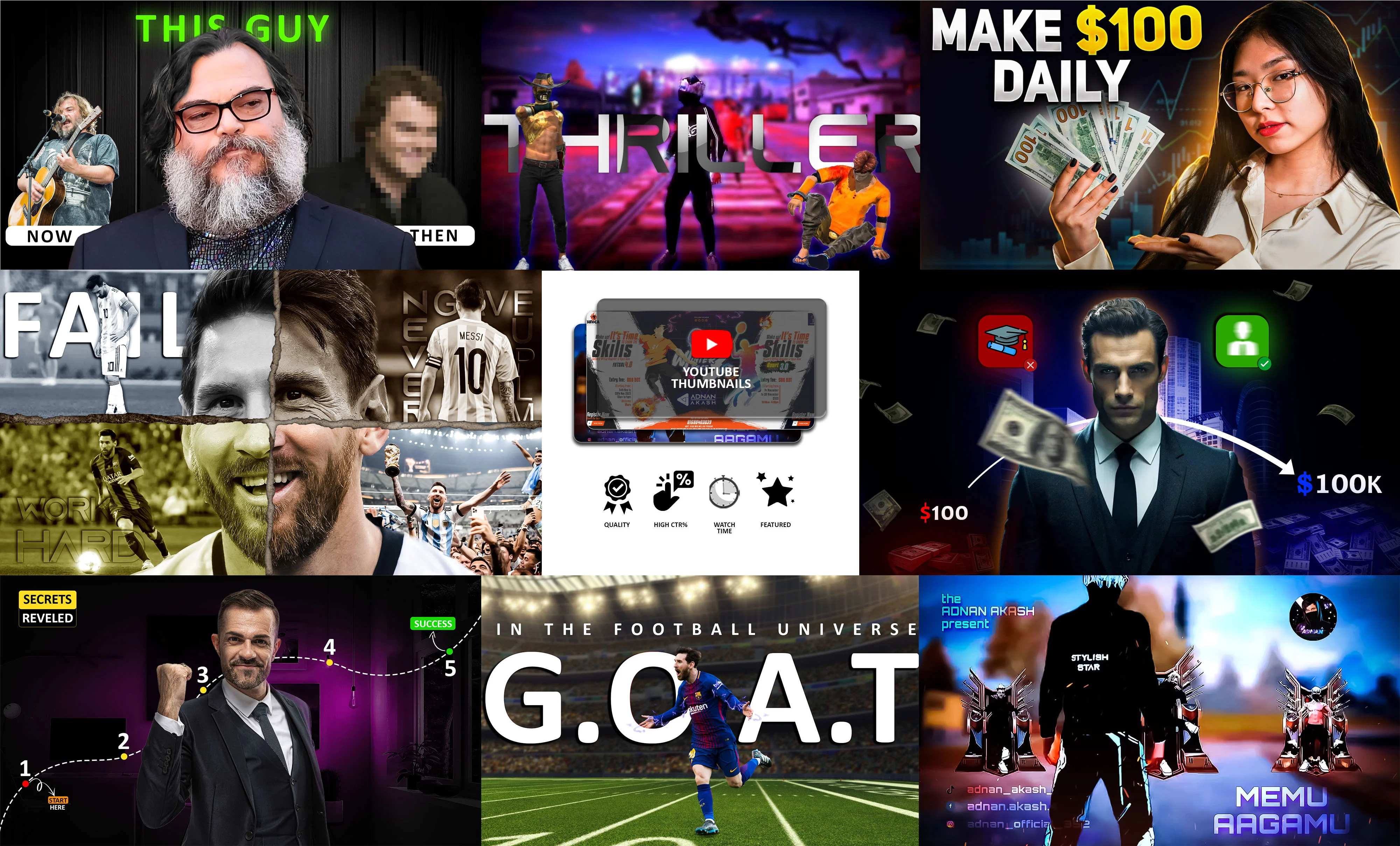 Whether it's for YouTube, Shorts, Reels, or any social media platform, each thumbnail is crafted with high-impact design principles—balancing vibrant imagery, expressive typography, and audience psychology to drive more clicks.